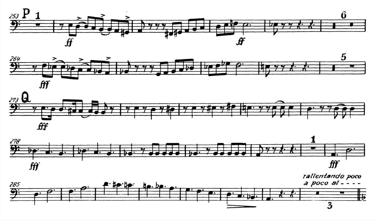 This is one of the most common orchestral excerpts for bass trombone. Notes should be full value and longer than you think to fit the orchestral style. Make sure your intonation, body of sound, and dynamics are in check. I recommend recording yourself and listening back to find areas for improvement.