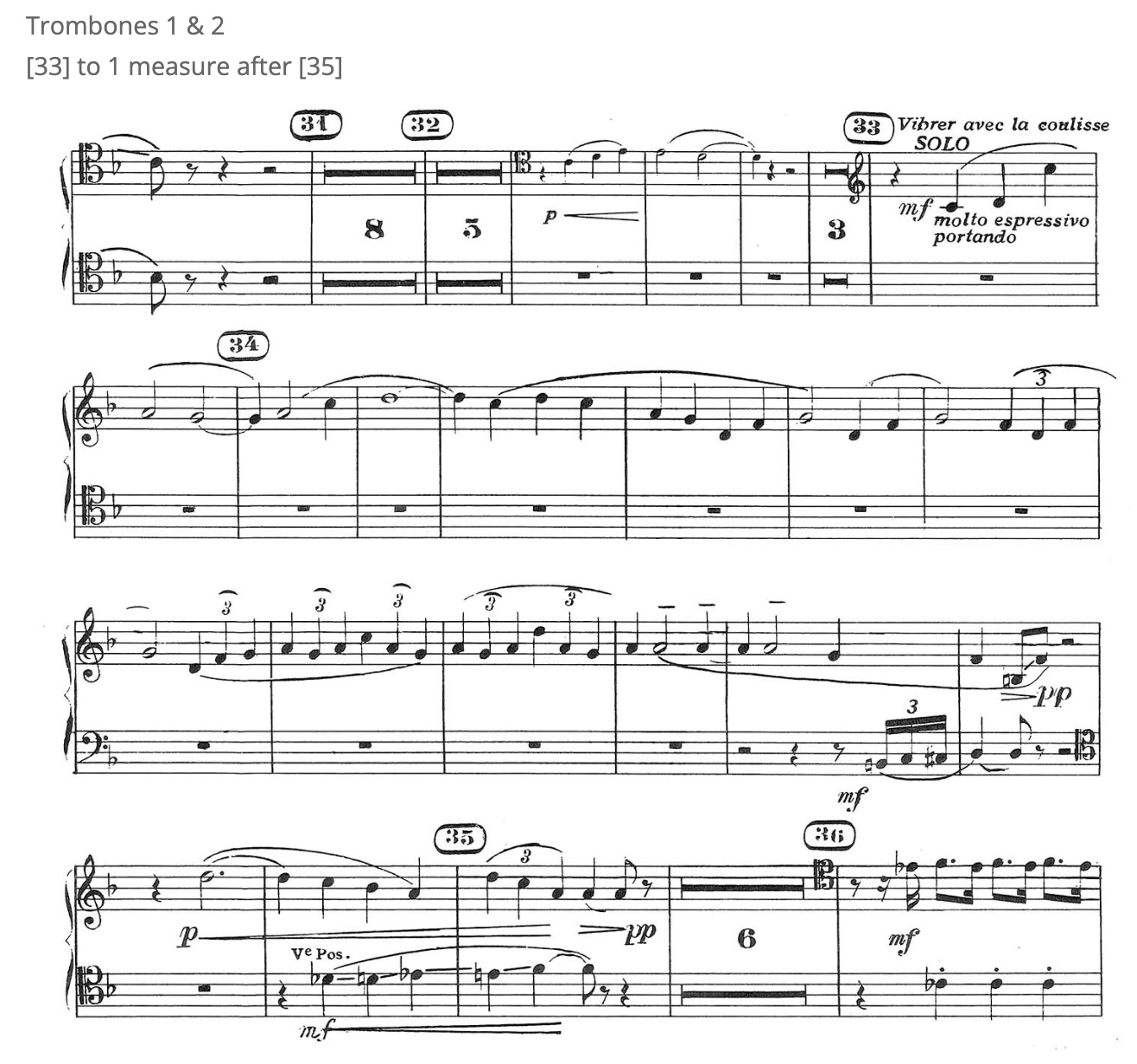 This is another famous orchestral trombone solo. Make sure to listen to recordings to know how this should sound dynamically and stylistically. This one is also extremely challenging because of the range- it's even in treble clef. Definitely record yourself and listen back many times to see where to improve.