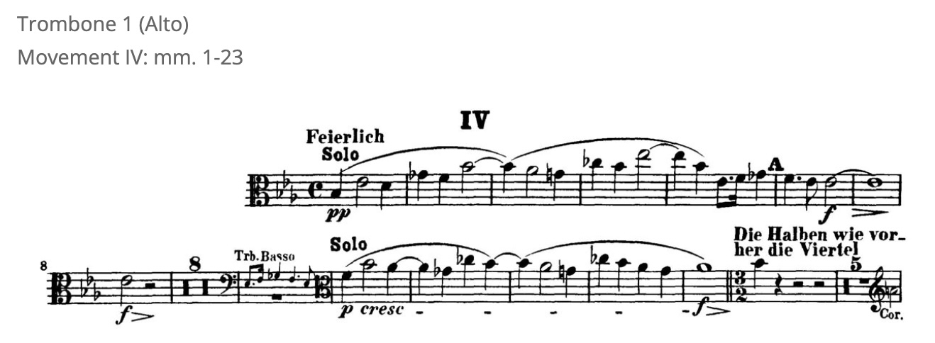This is one of the most standard orchestral excerpts for trombone. Yes, I see the high Eb. You would be unlucky to be asked for this excerpt in a youth audition, but I have seen it come up nonetheless. Play this one soft, but not so soft that your sound loses its presence. Also, pay special attention to your intonation as you play in these softer dynamics. Finally, focus on very smooth note transitions and a fast slide. I recommend recording yourself and listening back to find areas for improvement.